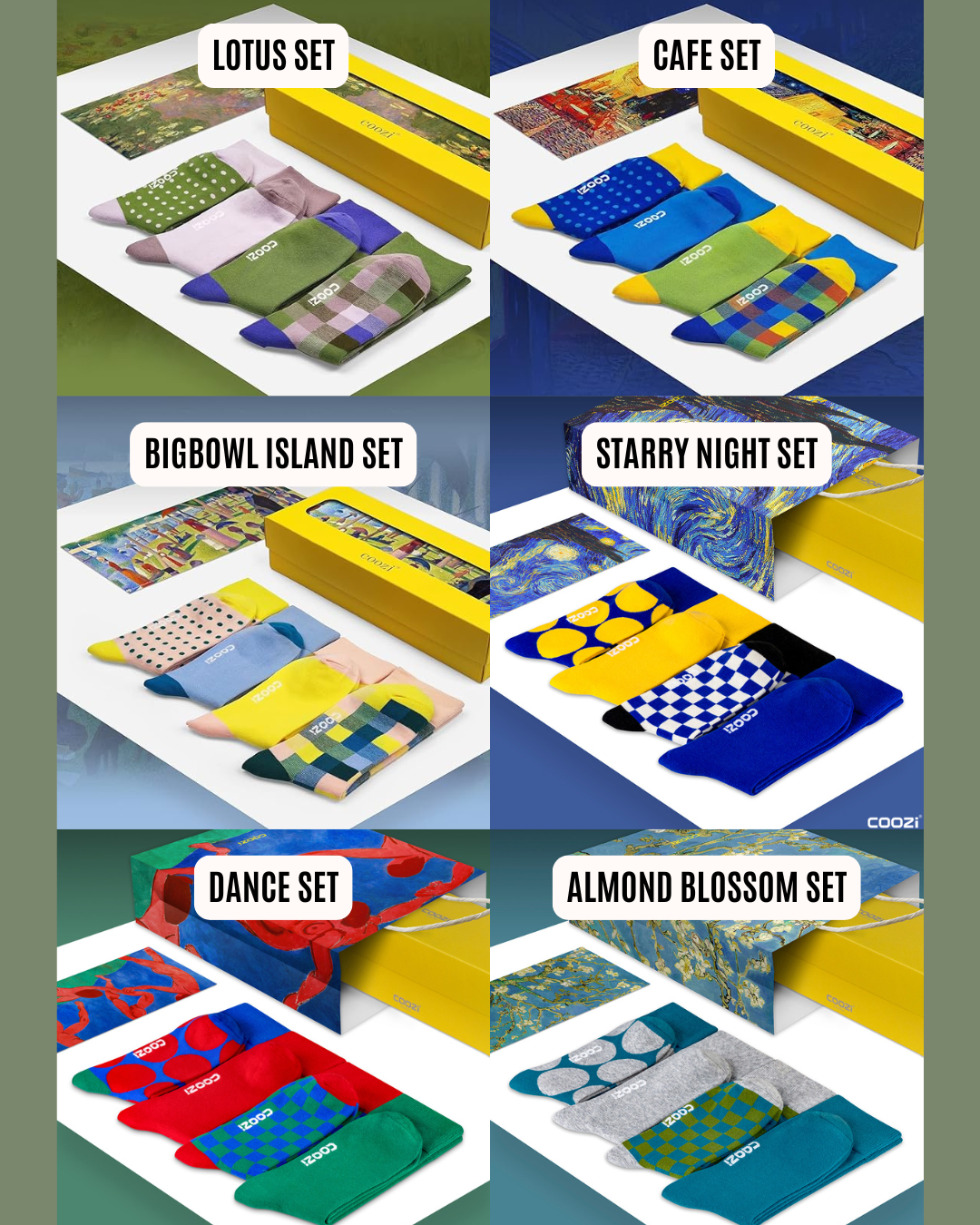 Elevate your everyday style with Coozi Artisan Socks, where comfort meets creativity. Inspired by some of the world’s most iconic paintings, these socks transform legendary artwork into a statement of fashion. Whether you're a devoted art lover or simply appreciate unique, high-quality essentials, these socks bring timeless elegance and unparalleled comfort to every step.